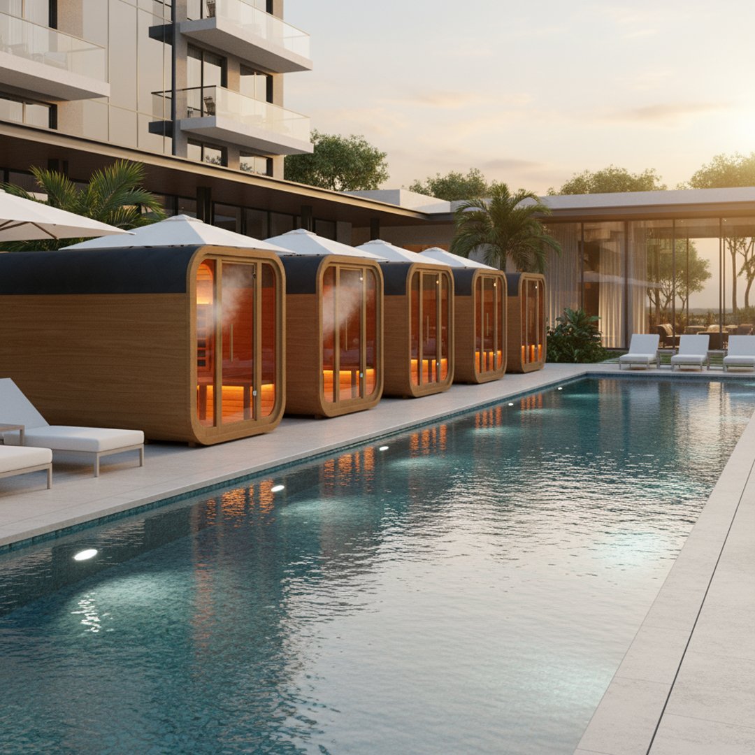 Bisolis Outdoor Box + Model, dış mekan kullanımına özel olarak tasarlanmış, dayanıklı ahşap yapısı ve güçlü ısıtma sistemiyle dört mevsim sauna keyfi sunan profesyonel bir sauna çözümüdür. Modüler yapısı sayesinde tadilat gerektirmeden kolayca kurulur. Yüksek ısı yalıtımı, hava koşullarına dayanıklı malzemeleri ve konforlu tasarımıyla bahçe, teras ve sosyal alanlar için uygundur.